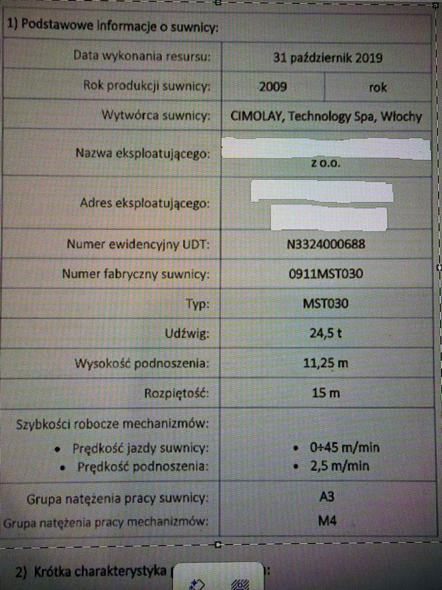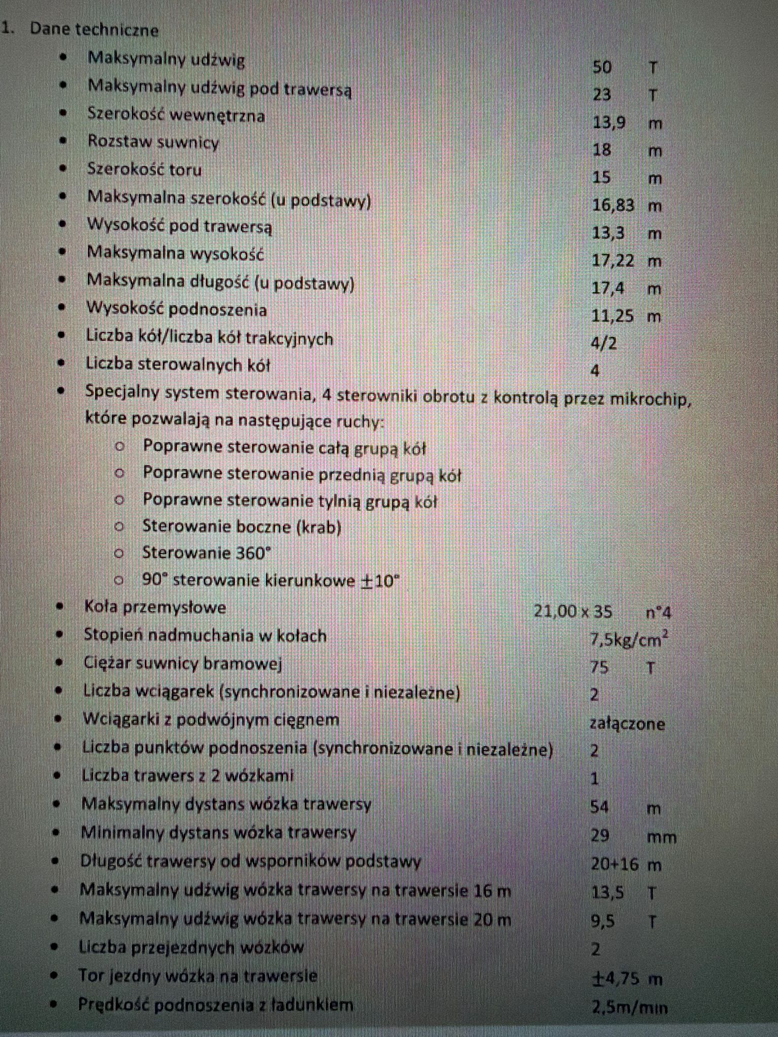 Wszystkie dane techniczne załączam w załącznikach.